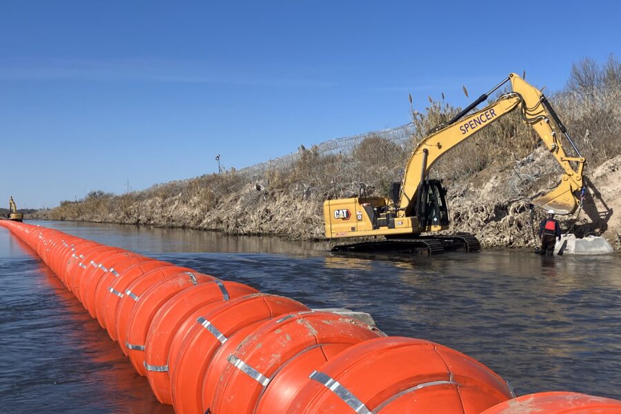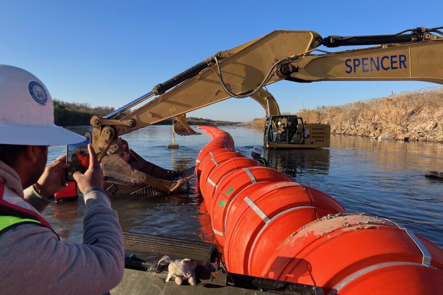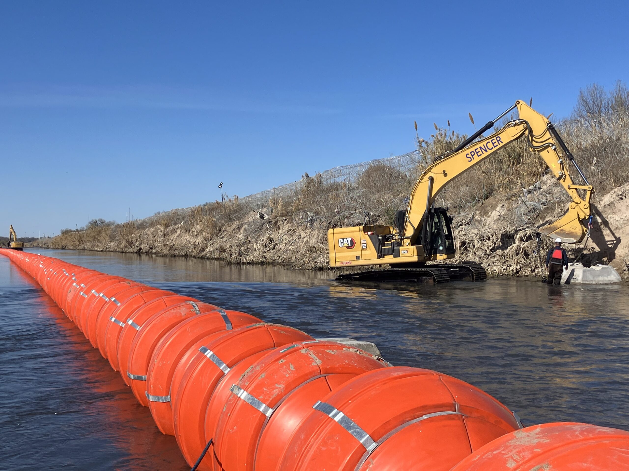 The Buoy Barriers project involved installing 1,000 feet of floating barrier systems along the Rio Grande River as part of a broader federal initiative to enhance border security and public safety. Crews faced record-breaking low temperatures—overnight lows in the 20s—while performing in-water operations against strong and variable river currents. Restricted right-of-way access also required daily setup and removal of concertina wire to secure ramps and staging areas.