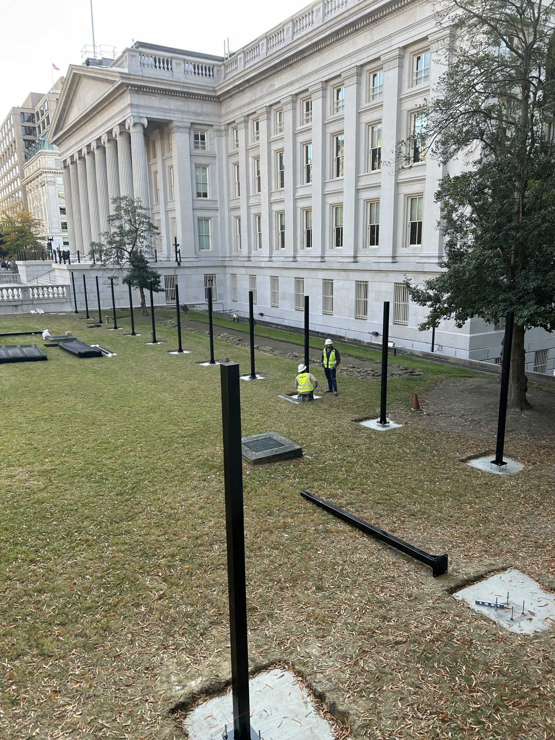 This project required meticulous work across the Eisenhower Executive Office Building and Treasury Building, with strict limitations on equipment and access. No gas-powered machinery was permitted; all excavation, material movement, and unloading were completed by hand or with vacuum trucks. Tight security coordination with the Secret Service added to the project’s complexity.